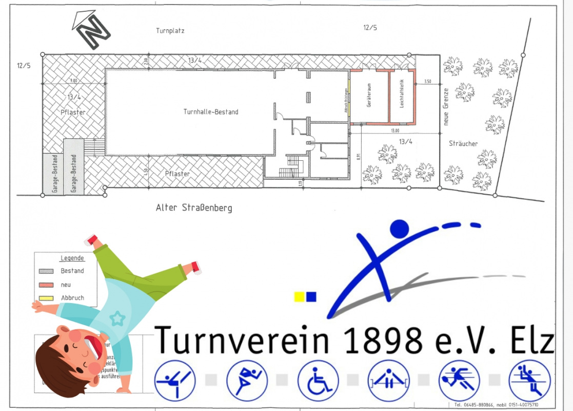 Der TV 1898 e.V. Elz packt’s an! Unsere Vereinsturnhalle bekommt einen Anbau. Und ihr könnt helfen: mit eurer Spende oder Arbeitskraft.